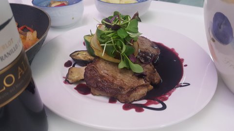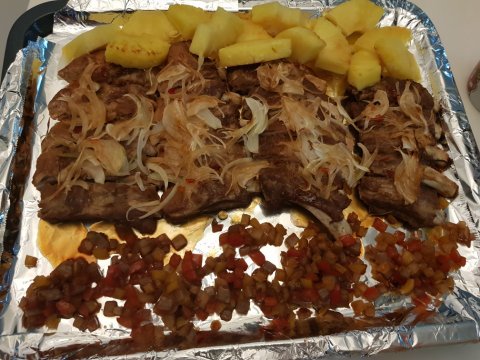 이전에 만들었던 발사믹삼총사졸임과 구운파인애플을 곁들였어요.