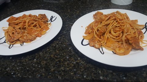 그리고 마리네이드 해놨었던 닭다리살로 만든 로제파스타인데