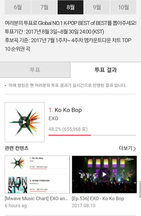 지금 2퍼센트 차이로 1위,, 월간 투표를 이겨야 MAMA에서 Mwave Music Chart 최종 후보에 오를 수 있다ㅇㅇ 투표 마감 7일 남음 개심각
