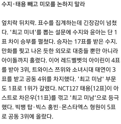 근데 어디서 태용이 얼굴이 좀 부담스럽단 소릴 들었어 ㅜㅜㅜ 또 어떤사람은 태용이 얼굴이 여자보단 남자에게 더 잘생겼다 느껴질 얼굴이래