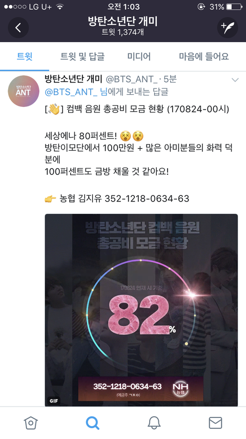 헐 음원총공비 82퍼 채웠대