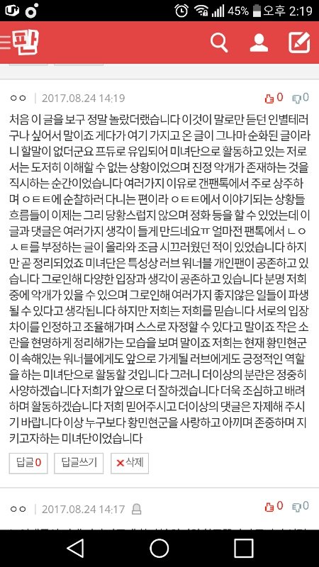 오늘 ㅇㅌㅌ에 황민현군 인별 테러 관련 글이 올라왔습니다 아마 보신 분들도 꽤 계실듯 싶습니다