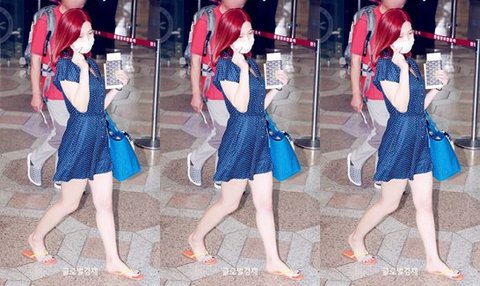 레드&블루 코디를 선보인 조이 공항 패션ㅋㅋㅋㅋㅋㅋㅋ