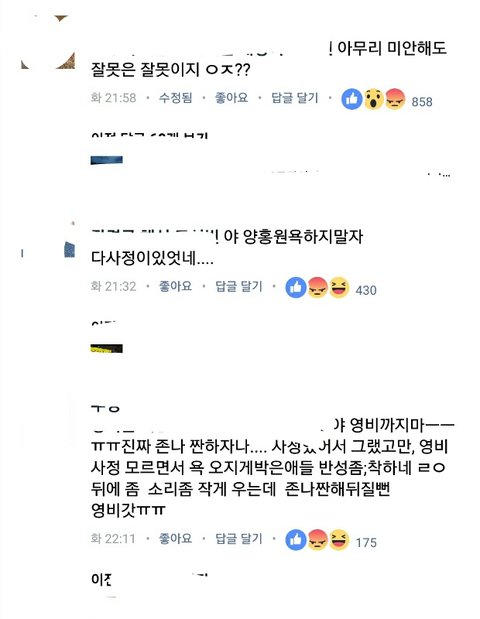댓글상황은 "까지말자.." "헐.." "사정이 있었네" 이따구임 정작 용서하면 안된다고 하는 댓글은 가끔가다 한두개.. 양홍원 파는애들은 무뇌인건가