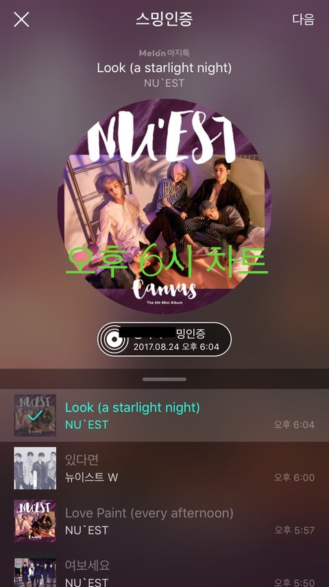 오후 6시 차트(ㅈㄴ 들어주세요)