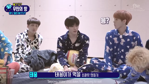 리얼리티 보는데 멤버들이 누군가에게 줄 초콜릿 만들자니까 뜬금없이 '태용이가 먹을 초콜릿 만들기'를 하자고...