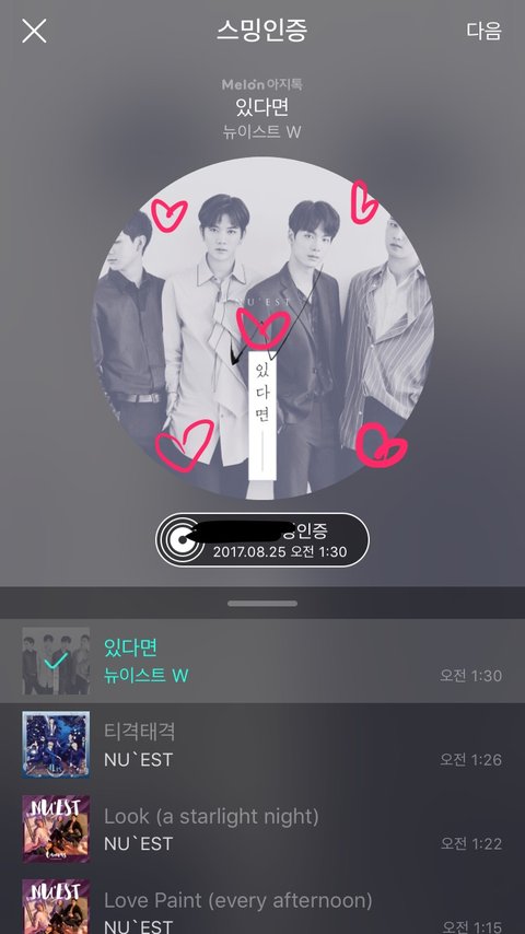 또 한곡듣고나서 앱완전히닫고(사과폰은 날리고~안드로는 방문기록삭제) 다시 크//롱을 열면