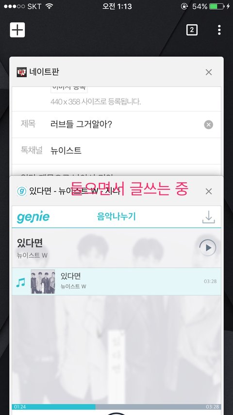 진이음악나누기 들으면서도 다른탭에서 ㅍㅌ이용이 가능해