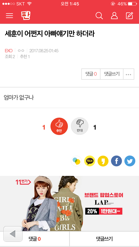 어휴 웬만하면 이런 말 안하려고 했는데 넌 그렇게 남을 까고싶니ㅋㅋㅋㅋㅋㅋ 나이 먹어서 그짓거리하는거면 걍 왜 사니 인생 어린 새끼라면 후회할 짓 하지 마라 지 부모 먹칠하는 짓 하고있네
