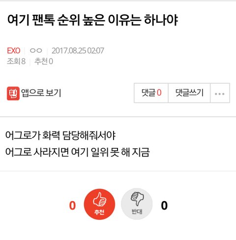 여기 팬톡 순위 높은 이유는 하나야