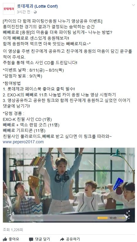 또 롯데제과 공식 페이스북에서도 엑소 랜덤 굿즈와 엑소 사인CD를 주는 이벤트도 하고 있어