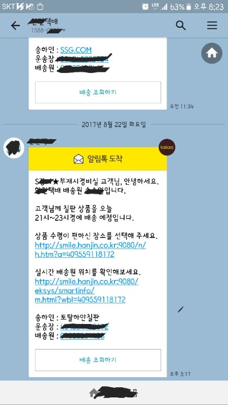 카톡으로H택배에서 톡이왔어요