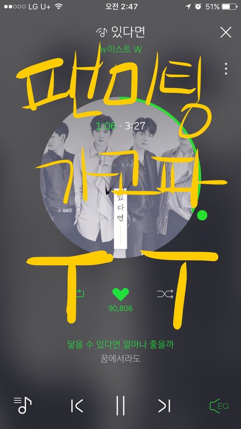 기타 치고 노래하는 그런 애들 좋아하고 인디 애들 좋아하고 그랬거든. 그냥 편견에 안 들었지 한 때 아이돌 후크송 유행해서 그 때부터 안 들었던 거 같은데. 뉴잇 파면서 애들 노래 알게 되고 덕분에 더 다양한 노래도 듣게 되고 아이돌들도 실력파가 많구나 좋은 노래 많구나 그러는 중인데...
