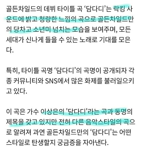 풋풋한 울림신인 골든차일드가 드디어 8월 28일 월요일 6시! '담다디'라는 곡으로 데뷔해(짝짝짝)