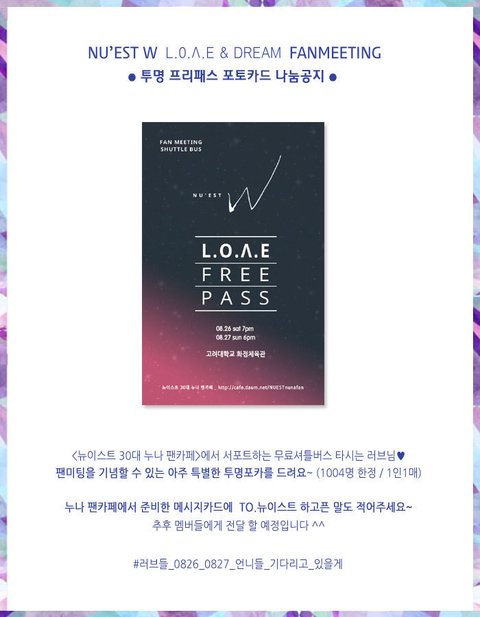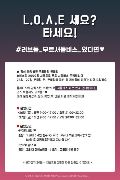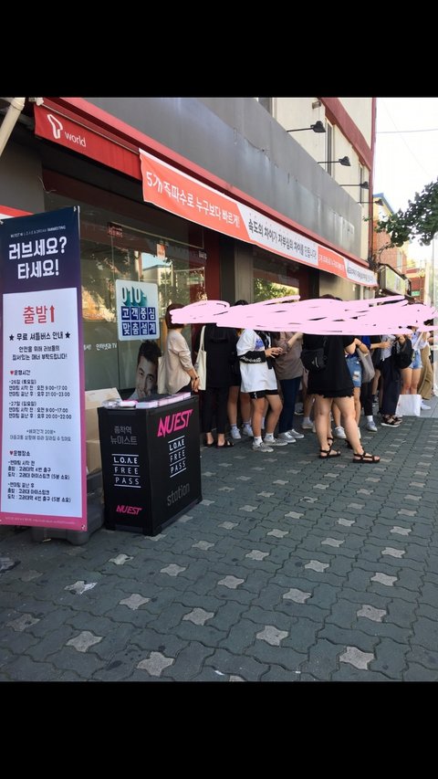 증차했대 그리고 11시40분부터 12시40분까지 브레이크타임이래 멋지다 빵빵한 러브언냐들!!! 나도 타고싶다 뉴이스트한테 실어다주는 저 대형버스ㅠㅠ