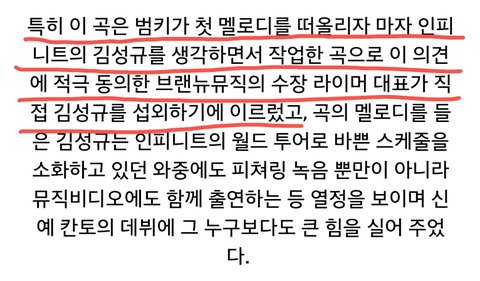 칸토때 곡 멜로디를 듣자마자 성규 음색 떠올리고 섭외, 소속사 대표가 직접 연락함 >>> 데뷔 대성공 (낮12시 진입 멜렉 10위 다른 사이트 최상위권 진입ㅇㅇ)