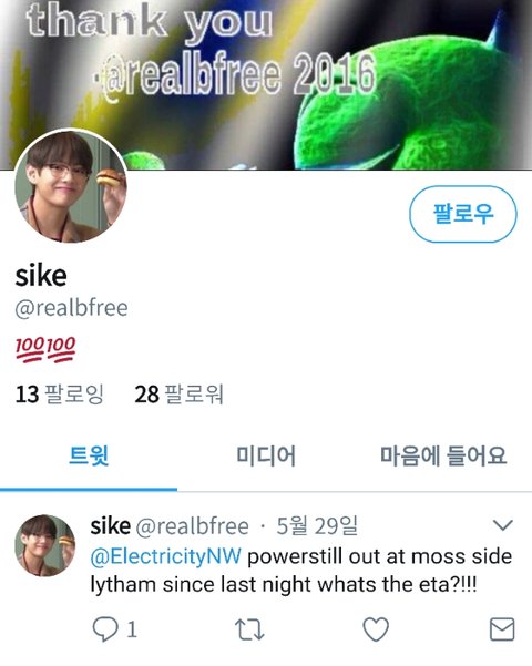 예전에 남준이랑 윤기 디스했던사람아니야?짹계정 프사가..왜 태태임?