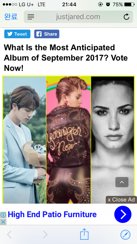 압도적이긴 하지만 하구오자 ㅋㅋㅋㅋ http://www.justjared.com/2017/08/25/what-is-the-most-anticipated-album-of-september-2017-vote-now/