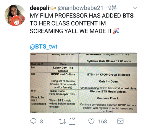 교수가 클래스 주제로 방탄 컨텐츠 ㄷㄷㄷ역시 슈스;;;