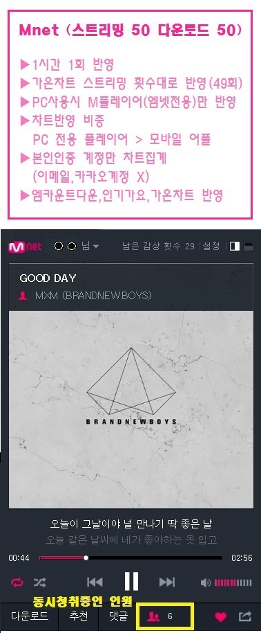 3. 엠넷스밍(동시청취자인원수 파악됨- 최소 400명이상은 되야해) -엠넷음악방송순위