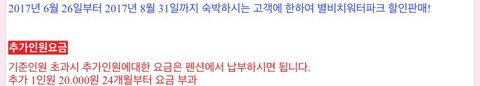 싸이트엔 아직도 워터파크수영장 제휴할인이라는 어그로멘트 그대로임 하지만 사이트에 우리 쫒아내고 방값 낮춘17만원으로 방올림