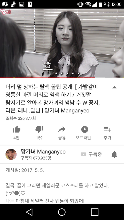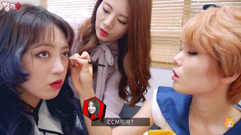 영상캡처한거야 미용실에서 머리를하고 메이크업을하는데 망가녀가 튼 음악을듣고 유튜버 라온님이 ccm이야?라고 물어