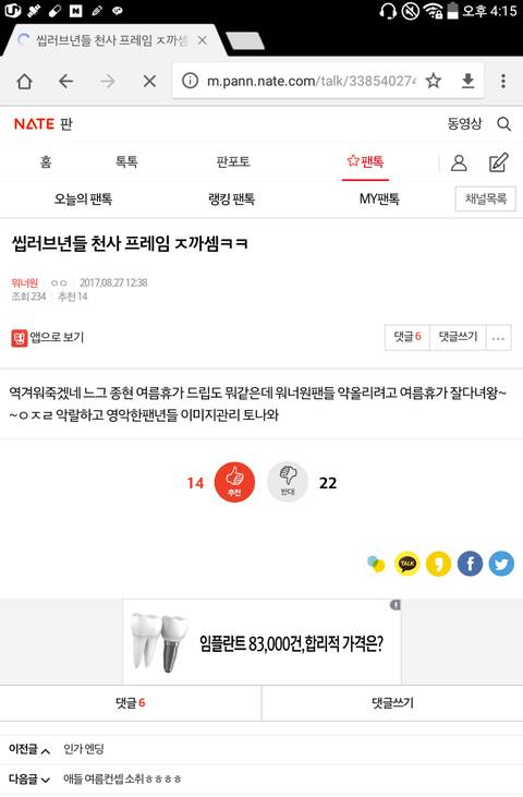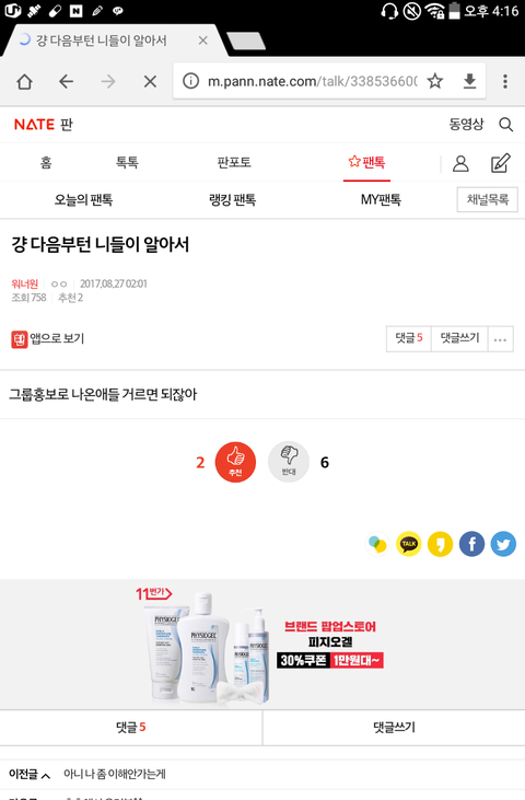 댓글 많은 톡