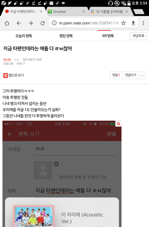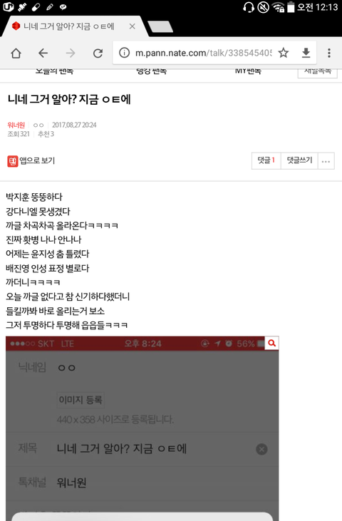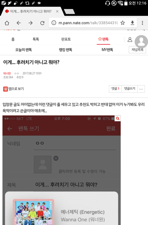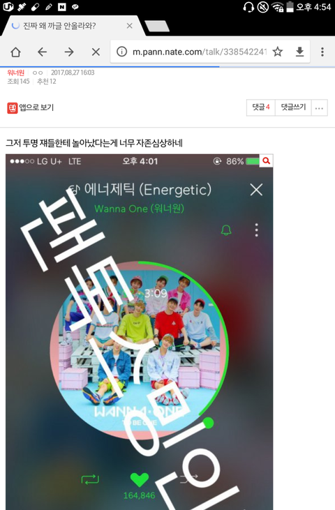 나보고 관음이라하는데 워너블이 워너원 팬톡에 있던건 관음아니잖아 그치?