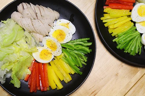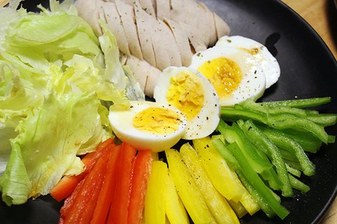 계란은 쪄서 통후추와 드레싱을 살짝 뿌려
