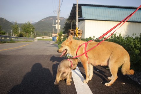 큰멍멍이 산책하는 동안 , 광주로 갈 초롱이를 데리고 나왔어요~