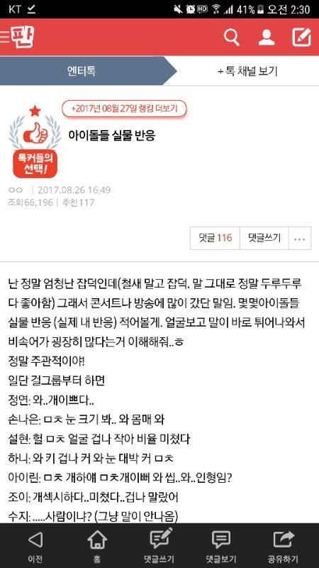 이 글을 본 거야.. 진짜 아무생각 없이 내리고 있었는데 댓글에 있는