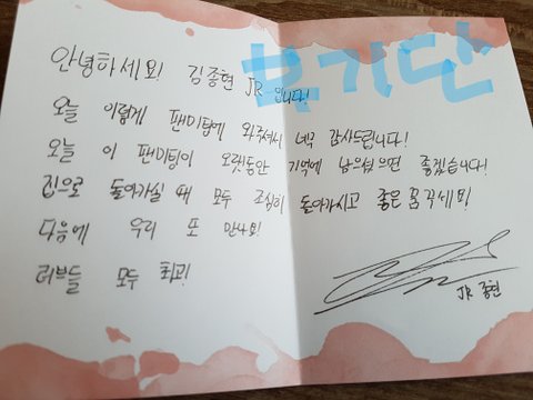 이 사진은 다들봤겠지만 종현이 카드ㅋㅋㅋ