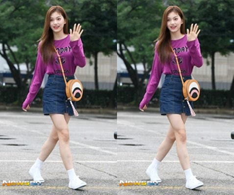 위키미키 김도연은 길쭉한 기럭지 돋보이는 패션으로 뮤뱅 출근했던데~~~