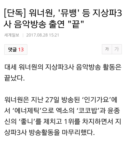 지상파 음방 끝이래
