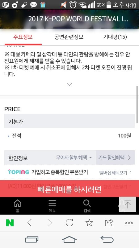 창원월드케이팝 티켓 백원맞아? 실화냐??