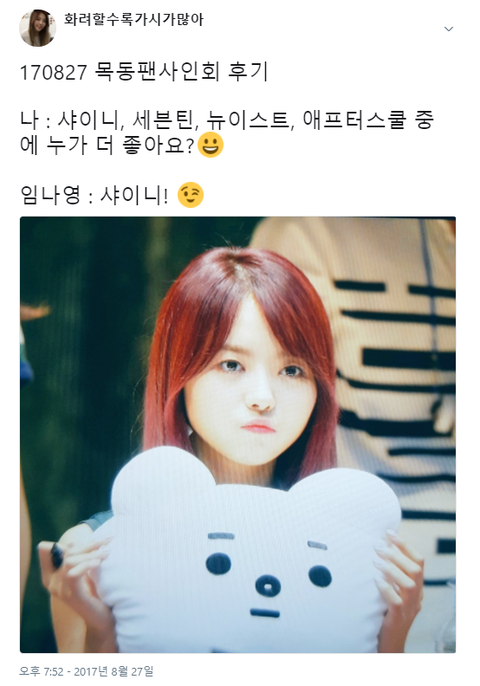 세븐틴,뉴이스트,애프터스쿨같은 직속선배보다 샤이니가 더 좋다고 ㅋㅋ
