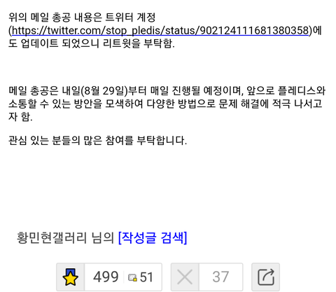 추천수 500이면 황팬만 있는것도 아닌듯 ㅋ 원갤에서 타멤팬들 몰려와서 추천 찍은거잖아 드디어 지들 맘에 쏙들게 행동하니까 ㅋㅋ 황마갤 진짜 한심하다