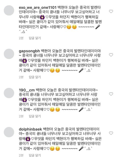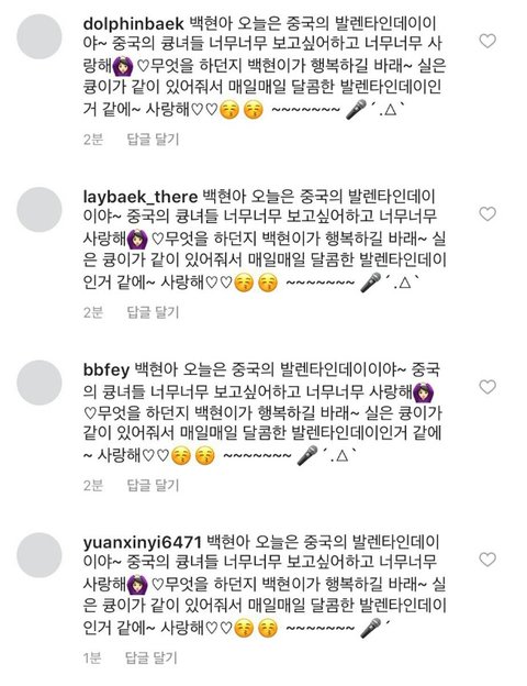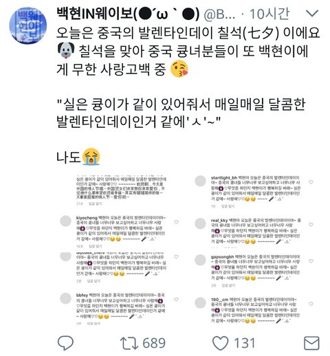 칠석을 맞아 중국 큥녀분들이 또 백현이에게 무한 사랑고백 중