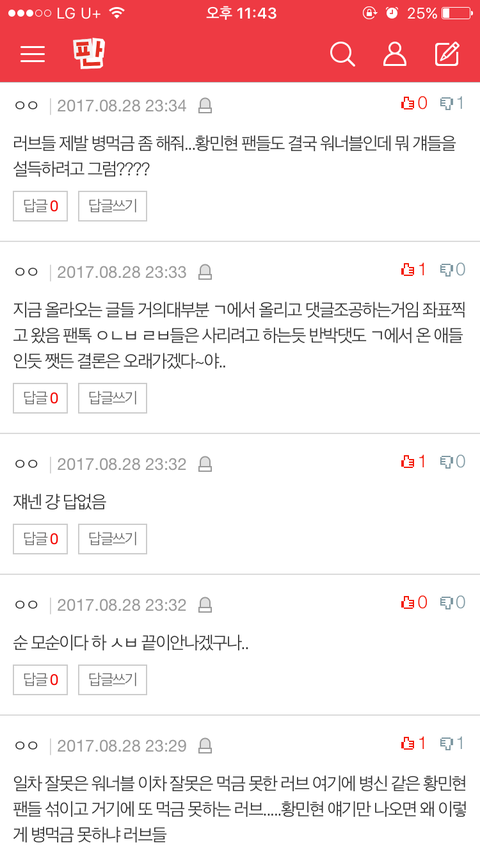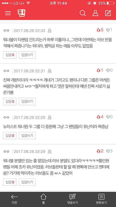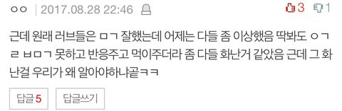 차라리 화나도 우리 팬톡에 푸는게 낫지 진짜 엔터가서 댓조공해주면서 싸우고 그러는건 정말 아닌것 같아 진짜 애들아ㅠㅠ 제발 우리 이걸로 지금 까지 계속 관리해오던거 한순간에 무너질수도 있어 우리 쫌만 더 조심하자... 혹시 팬톡러브들 중에 그러는 러브들있으면 제발.... 제발 부탁해 정말 차라리 우리끼리 얘기하자 ㅠㅠㅠㅠ