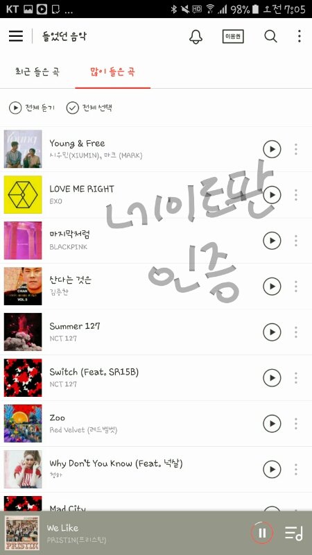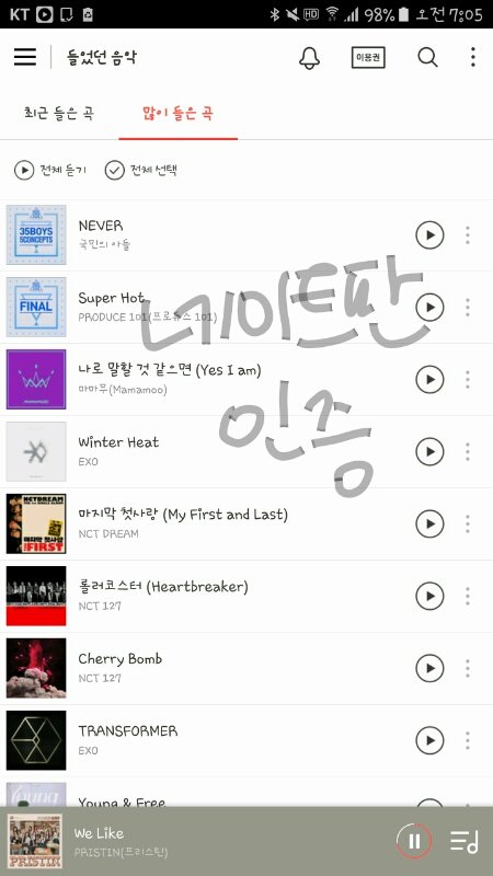 +) 머글코스프레라고 하길래 글 추가해~ 내가 멜론은 안쓰고 벅스쓰는데 이것도 인증이 될까 싶어서ㅎㅎ 주위에 SM덕질하는 친구들많아서 친구들이 수록곡추천해주면 듣는 것 밖에 없는데ㅋㅋㅋㅋ뭐라고 머글코스프레라고하는지 모르겠네