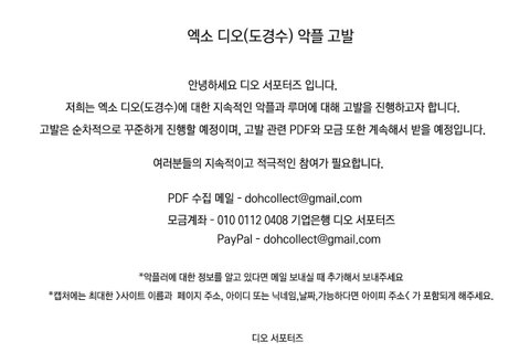 디오 서포터즈에서 악플고발 진행한다