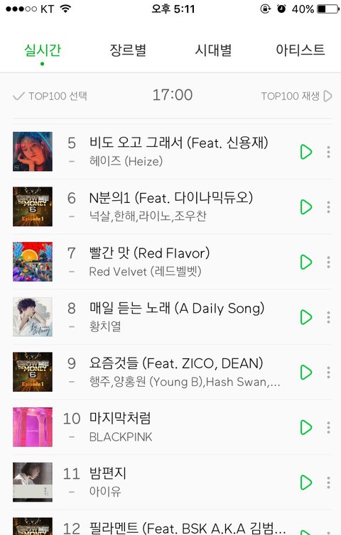 멜론 오후 5시차트 밤편지 11위