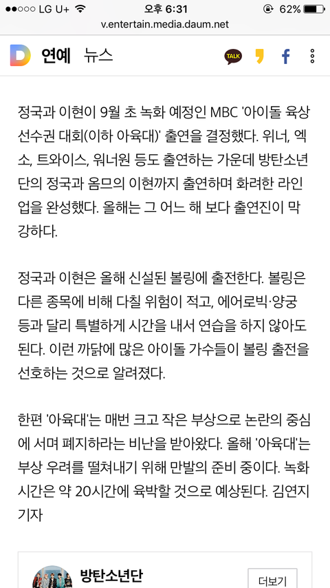 ++++근데 애들 다나가는데 정국이가 볼링 나가는건지 아님 정국이만 혼자 볼링하러가는지 모르겠음 제목에 오해의 소지가...