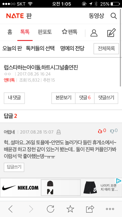 우선 26일 토요일에 장천이랑 배윤경을 안면도 근처 휴게소에서 봤다는 목격담이 28일에 올라옴