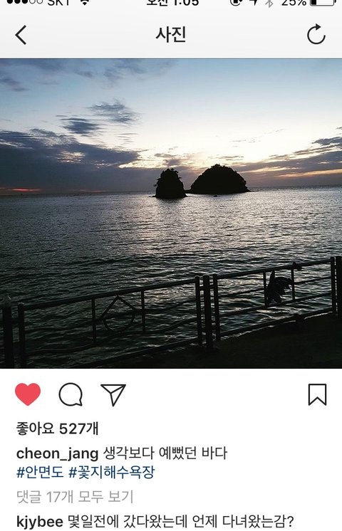 그리고 어젯밤/ 오늘 새벽에 장천 인스타가 올라옴 보다시피 안면도에 간 걸 알 수 있음
