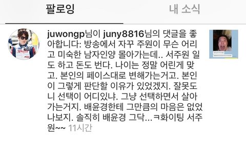마지막으로 서주원ㅋㅋ 배윤경 까는 댓글 좋아요 누름ㅋ 정뚝떨