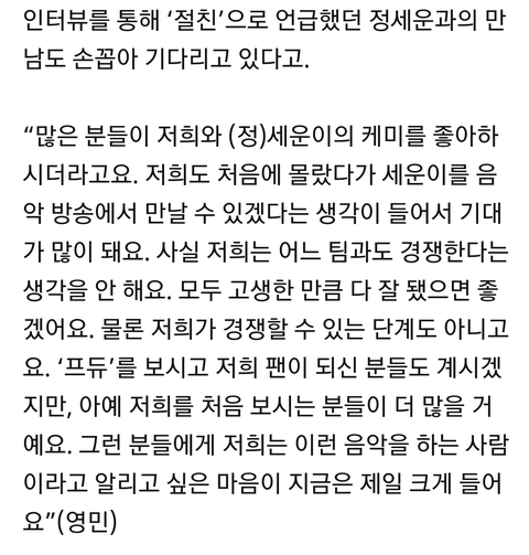 데뷔날짜가 비슷해서 영동포가 음방에서 만날수 있는 기회이기도하고