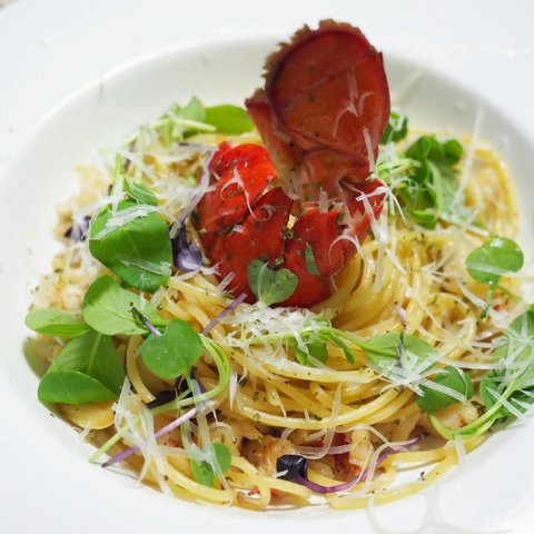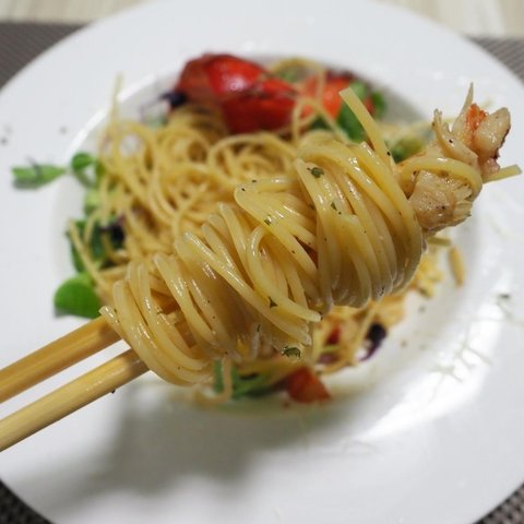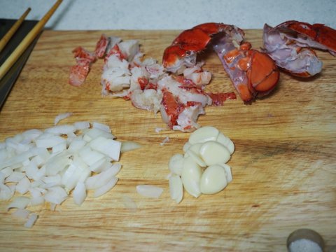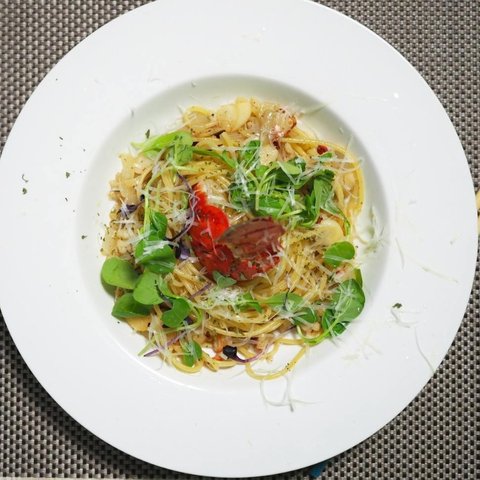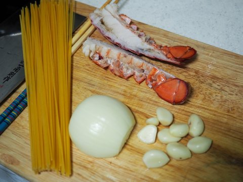 재료는 기본 알리오올리오에 랍스타 테일 1개를 추가했습니다.