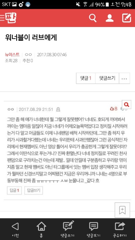 워너블이 러브에게 ㅂㅁㄱ 사진O