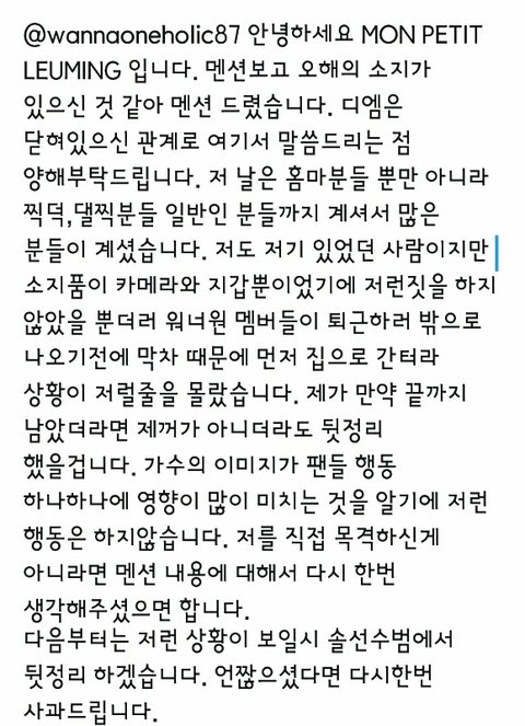 이건 저기 갔던 홈마 피드백이야 막차 때문에 떼지도 않고 갔대 떼는게 뭐가 그리 오래 걸린다고 노답이다